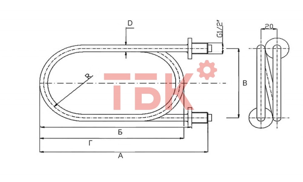 ТЭН для воды 1600 Вт L-210 мм G1/2'', 85/1,6-Р-220 ф.7 Ш